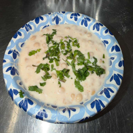 Creamy yogurt mixed with crispy boondhi and spices. Classic Indian raita loved at weddings and parties.