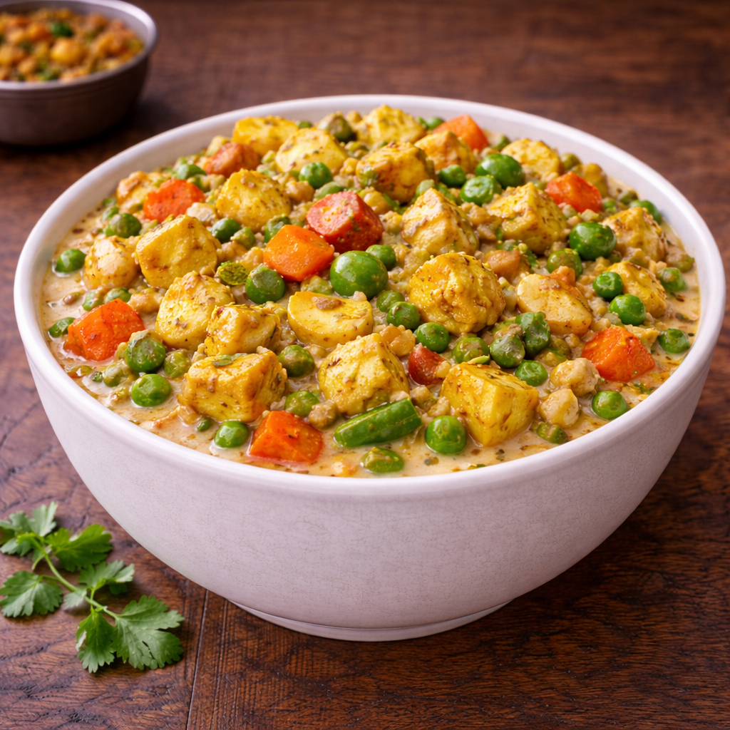 Rich creamy curry with assorted vegetables and nuts. Premium vegetarian dish for weddings and events.